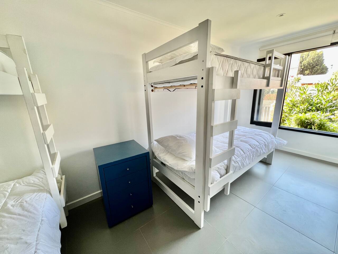 Spacious living-dining room with an open-plan kitchen, connected to a terrace with a barbecue grill. − The master bedroom has a king bed (capacity 2 people). − The second bedroom has two single beds (capacity 2 people). − The third bedroom has two bunk beds (capacity 4 people).