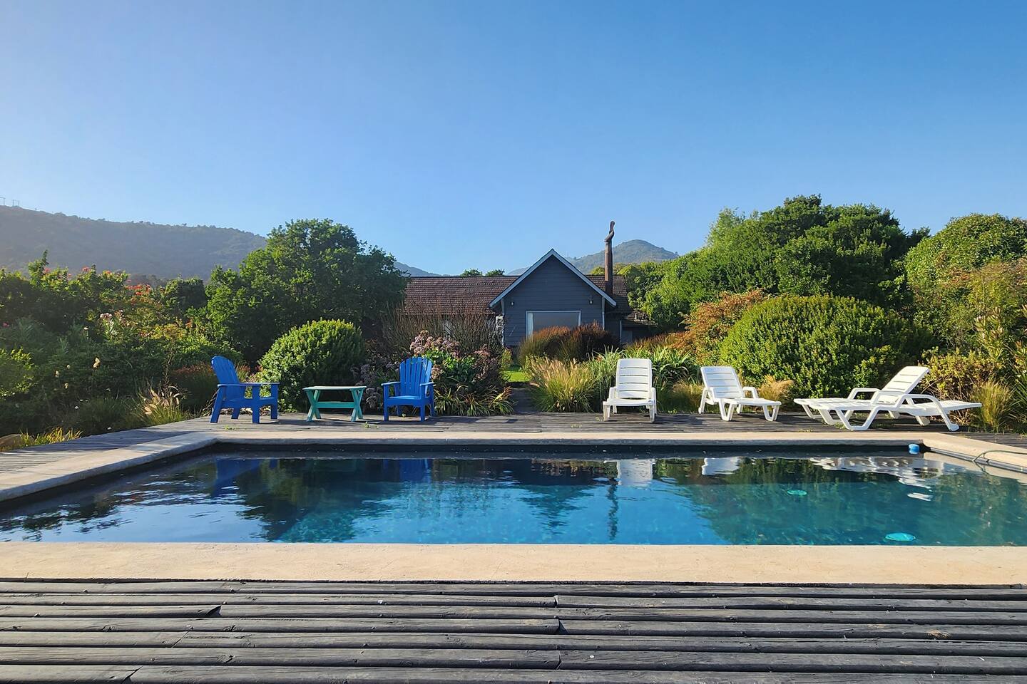 Acogedora y bonita casa con piscina, vistas al mar y 5.000 metros cuadrados de jardines. Ideal para conectar con la naturaleza, disfrutar de los detalles en cada rincón, con amplios espacios y vistas panorámicas. Ven a crear momentos inolvidables mirando el mar, leyendo en la terraza o haciendo un asado. A 5 minutos en auto de la playa de Cachagua. NO SE ACEPTAN GRUPOS DE JÓVENES NO SE PERMITEN FIESTAS