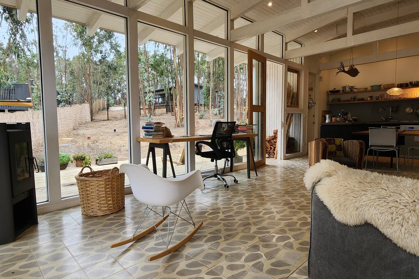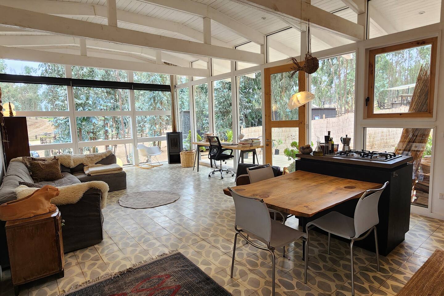 − Amplio living-comedor con cocina americana, conectado a una terraza. − El dormitorio principal cuenta con una cama King y una hermosa y relajante vista al campo (capacidad para 2 personas).
