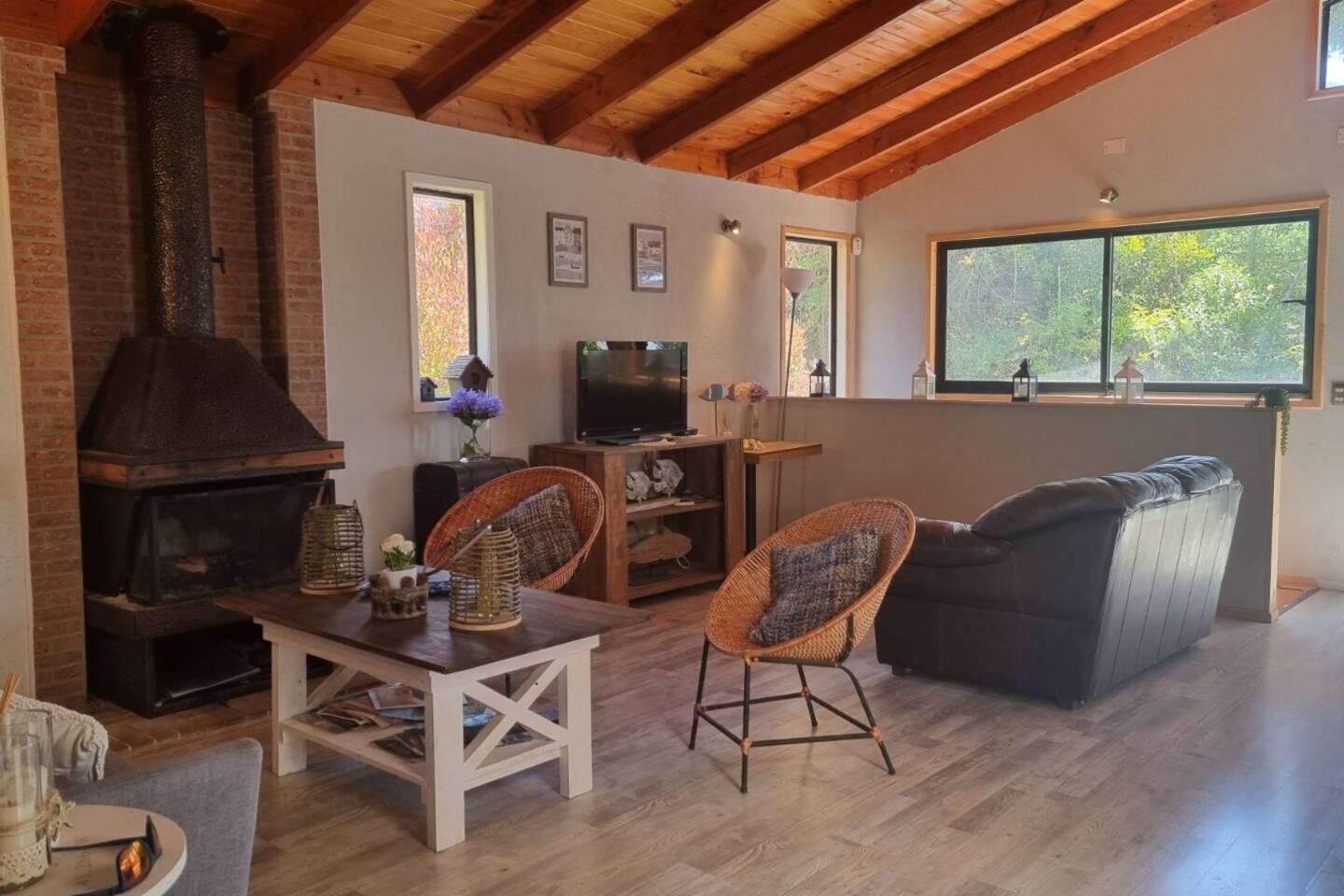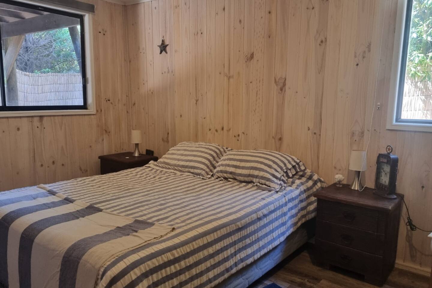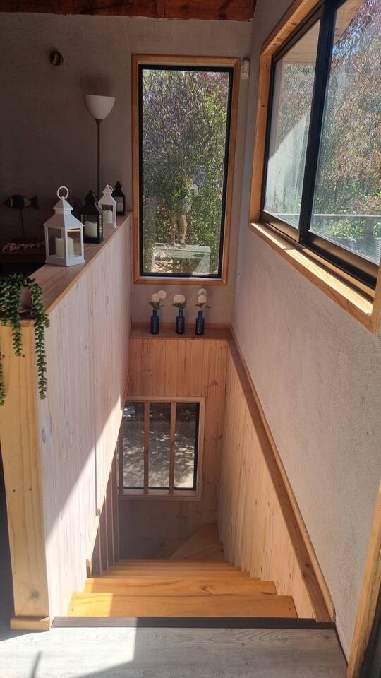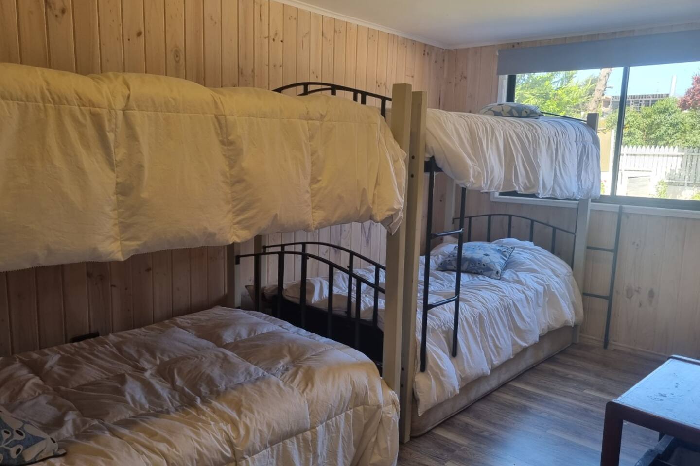 Amplio living-comedor con cocina americana, que conecta a una terraza con parrilla. Segundo piso: − Dormitorio principal: en suite con walk in closet, está en el segundo piso, tiene cama king y una linda y relajante vista al campo (capacidad 2 personas). − Baño 1: en suite en el dormitorio principal, baño completo. − Dormitorio 2: con cama nido de una plaza, está en el segundo piso (capacidad 2 personas). − Baño 2: baño de visitas, baño completo en el segundo piso. Primer piso: − Dormitorio 3: con cama matrimonial, está en el primer piso (capacidad 2 personas). − Baño 3: completo en el primer piso. − Dormitorio 4: en suite, con dos camarotes, está en el primer piso (capacidad 4 personas). − Baño 4: en suite, dentro del dormitorio 4, que tiene dos camarotes, baño completo. − Dormitorio 5: con cama de una plaza (capacidad 1 persona).