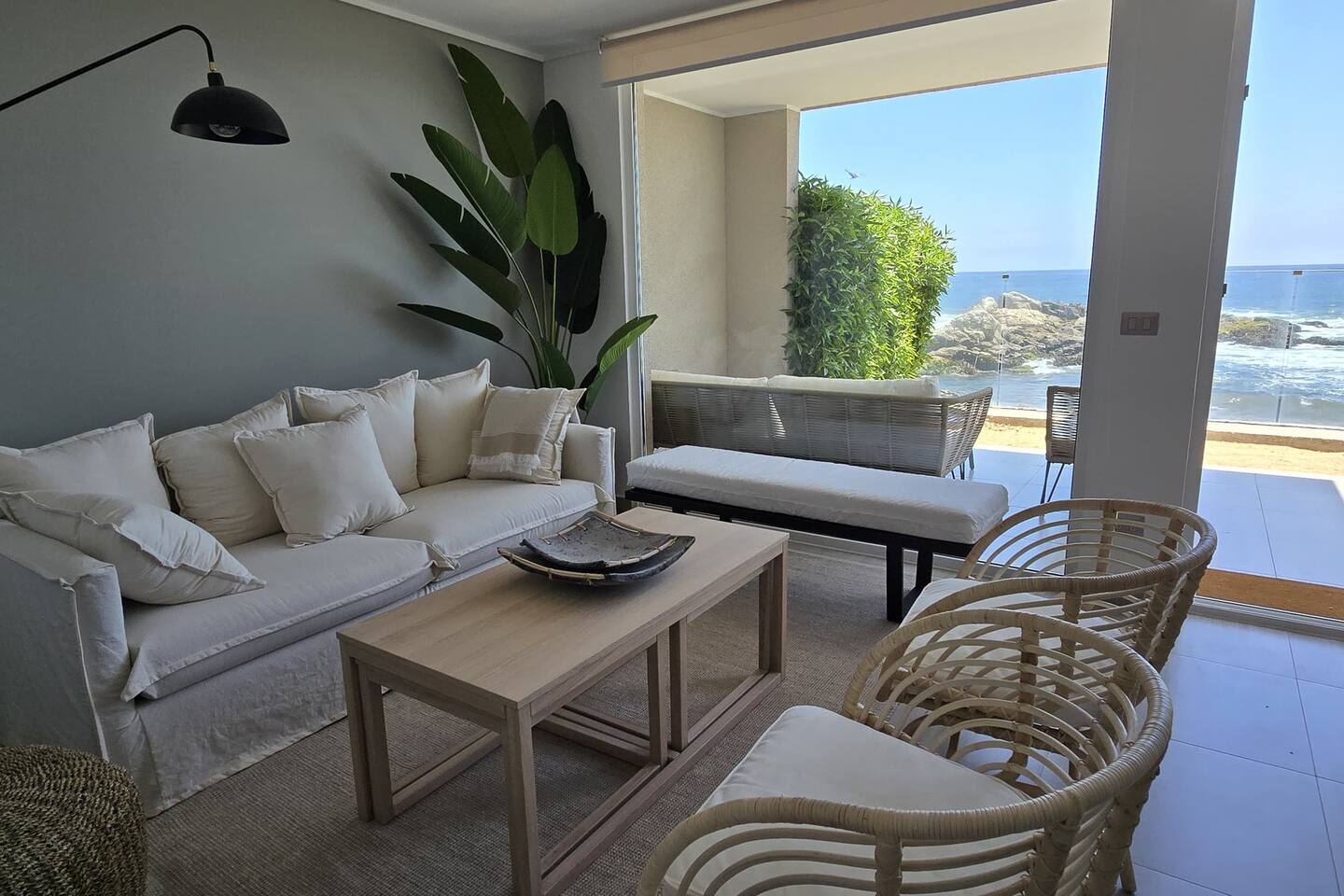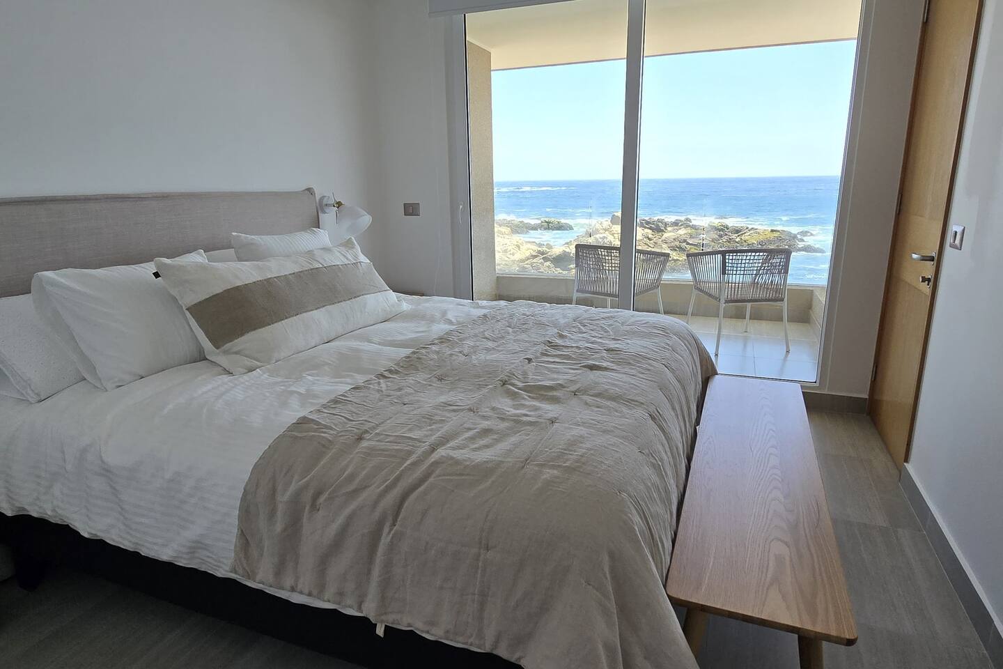 Stylish and cozy apartment in the Las Rocas de Maitencillo Condominium, facing the sea, spectacular views, tranquility, spaciousness, and great amenities. Located in front of the rocks, just steps from El Abanico Beach. 5 minutes walking to Maitencillo's restaurants, cafés, and shops. No Smoking No pets allowed No Parties Allowed