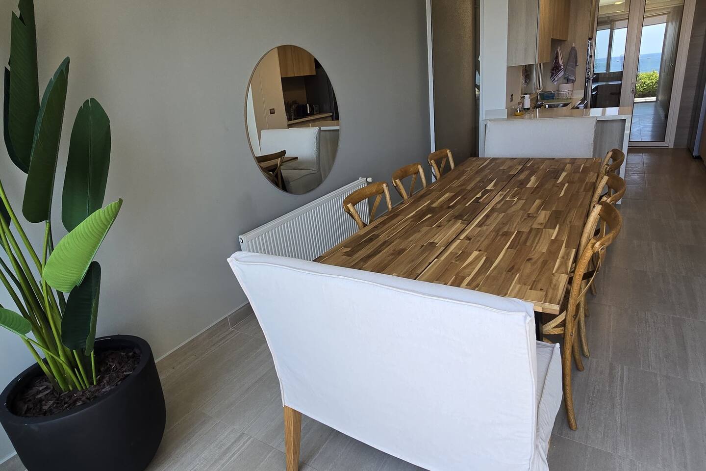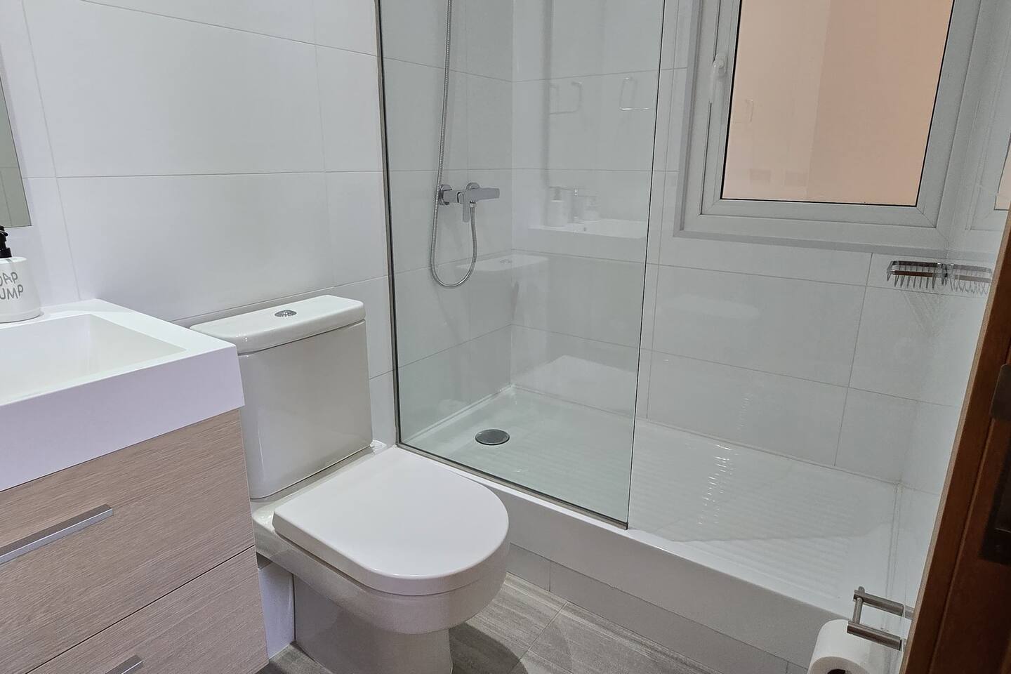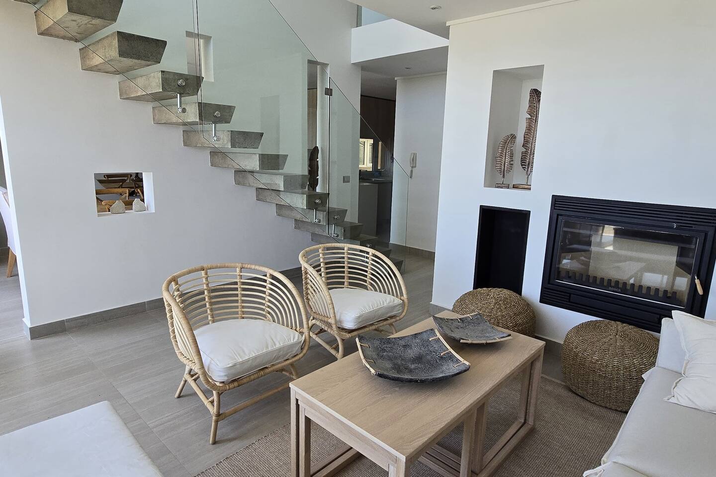 Separate living and dining rooms, both with sea views. The dining room has an integrated kitchen. FLOOR 1: − Living room − Dining room − Terrace and garden − Kitchen − Laundry area − Bedroom 4: with trundle bed (sleeps 2). − Bathroom 4: guest bathroom and for bedroom 4. FLOOR 2: − Master bedroom: en suite bathroom with King bed (sleeps 2). Has a terrace with sea view. − Bedroom 2: en suite bathroom with two beds (sleeps 2). − Bedroom 3: with two beds (sleeps 2). − Bathroom 1: en suite in the master bedroom. − Bathroom 2: en suite in bedroom 2. − Bathroom 3: for the third bedroom and the small living area, located in the hallway on the second floor.