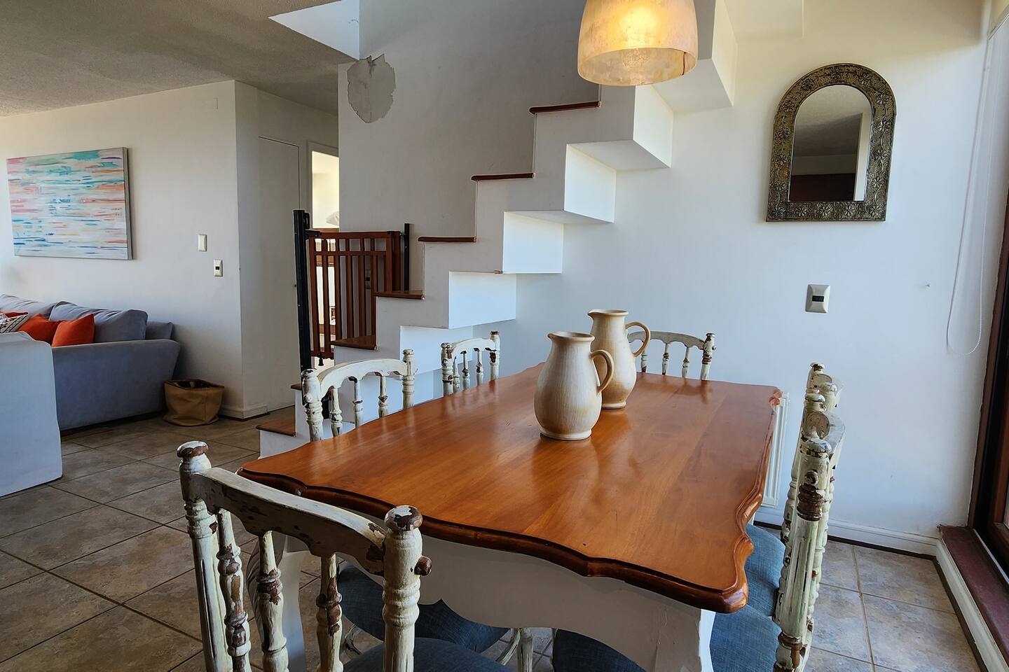 Departamento dúplex en el último piso del edificio. 1er piso: Amplio living-comedor con cocina americana. Una terraza con vista al mar con acceso desde el living. Una segunda terraza con parrilla, con acceso desde el comedor. − Segundo dormitorio con dos camas individuales (capacidad 2 personas). − Tercer dormitorio con dos camas individuales (capacidad 2 personas). − Dos baños completos. 2do piso: − Dormitorio principal en suite con cama king y una agradable y relajante vista al mar (capacidad 2 personas). − Un baño completo. El condominio Costamai tiene acceso a la playa bajando unas escaleras, toma aproximadamente cinco minutos bajar y diez minutos subir.