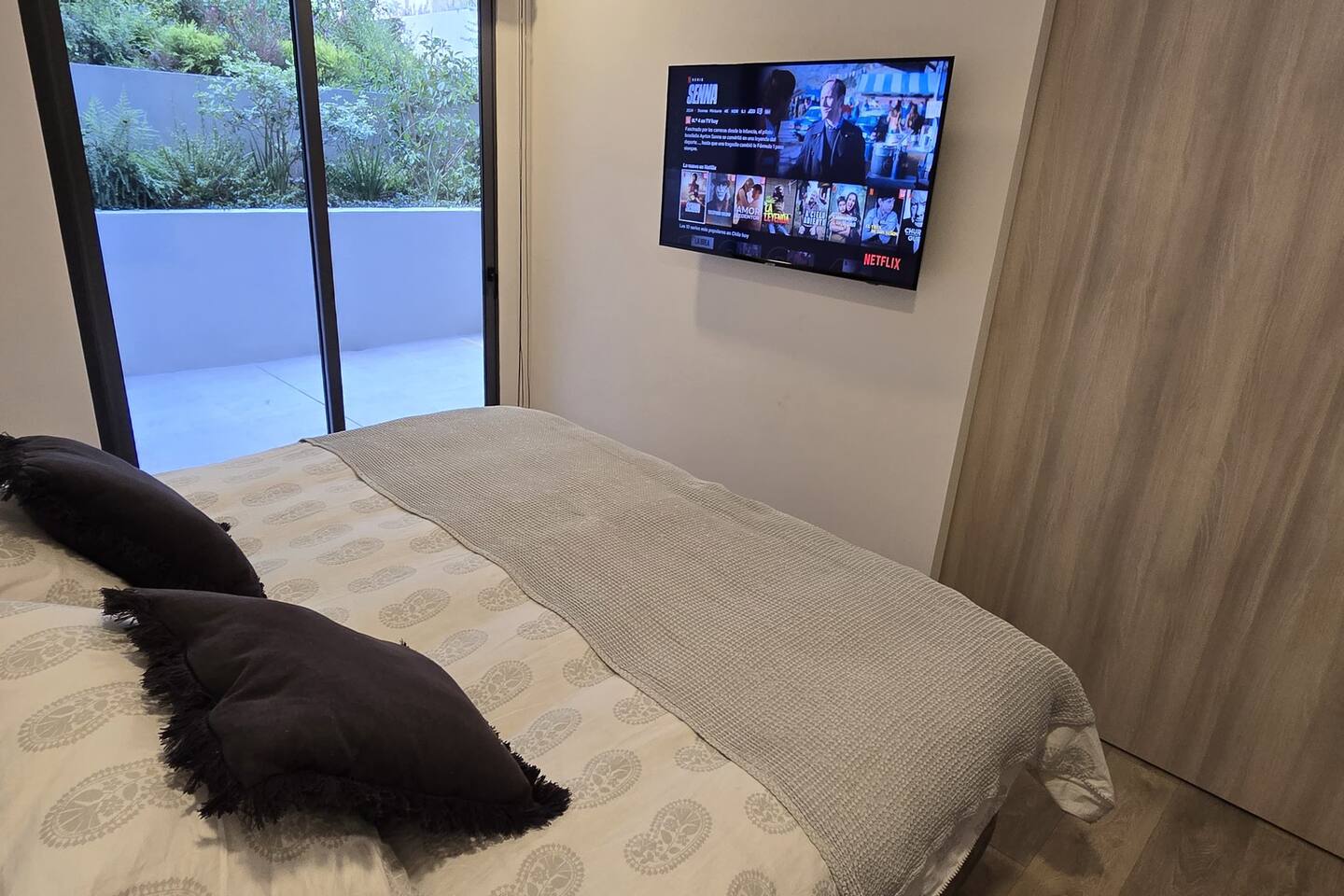 Recomiendo este lugar es perfecto! Me quede 3 meses, es un departamento hermoso, decorado muy lindo y moderno, tiene todo lo necesario para una estadía larga, con todo lo que necesitas, te sentirás como en casa. La cama es excelente! La zona es segura y el edificio es lindo y moderno. Tiene un pequeño patio/terraza con un jardin de plantas enorme, hermosas y muy verde! Sin duda volvería a hospedarme en este lugar!